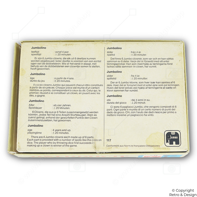 β’ βIn Jumbolino draait alles om snelheid, geluk en plezier: wie bouwt als eerste zijn clown compleet met behulp van de dobbelsteen? Een echte klassieker onder de kleuterspellen!