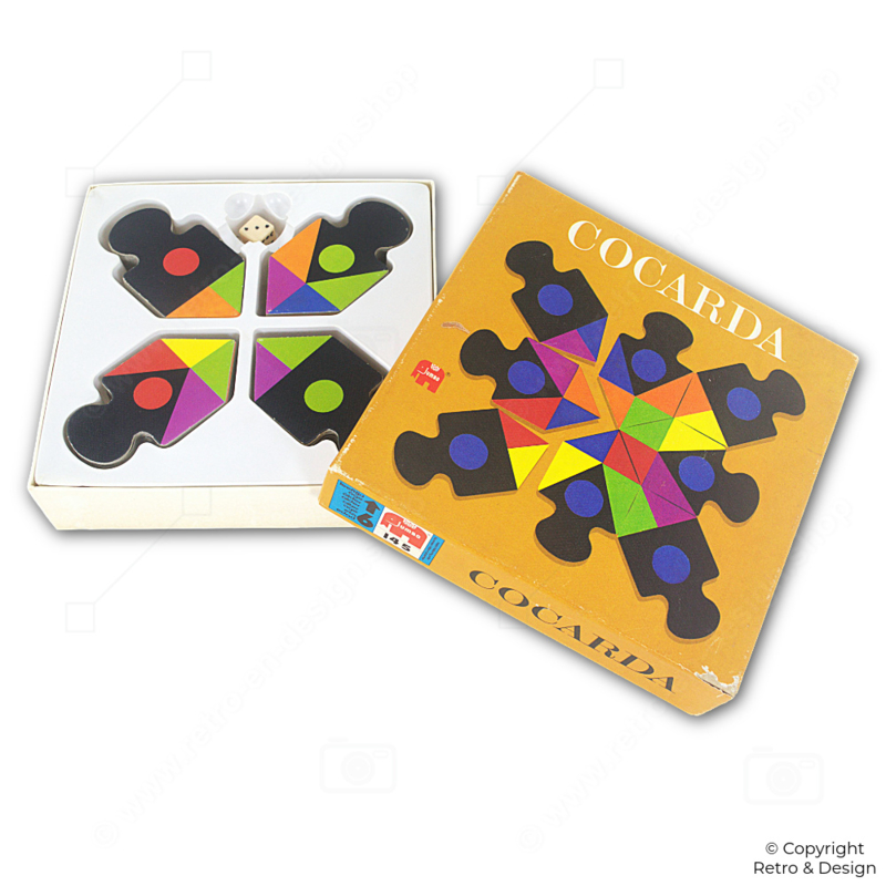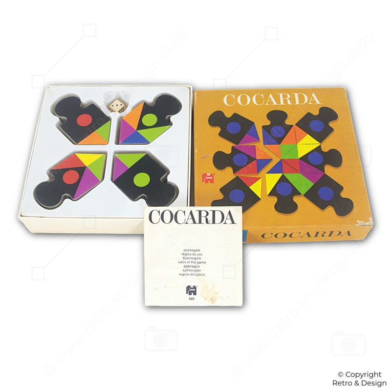 • Cocarda is een kleurrijk en tactisch kaartspel van Jumbo uit 1975, waarbij spelers rozetten vormen door slim kaartjes te verzamelen.