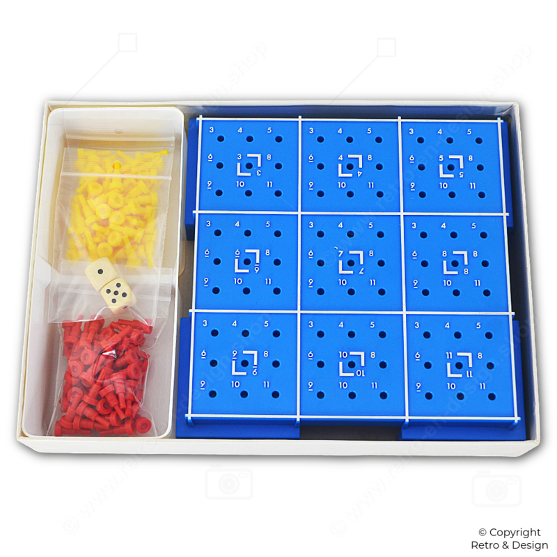Bij Super 3 probeer je drie vakken naast elkaar te veroveren om te winnen β maar dan in drievoud. Je plaatst pinnetjes op basis van de dobbelsteenworp (bijv. 10 = vrij kiezen; 7 = middenvak). Bepaalde combinaties geven extra plaatsingsmogelijkheden. Het resultaat: snelle potjes, veel spanning en onverwachte wendingen. Leuk voor korte speelmomenten en nostalgische spelavonden.