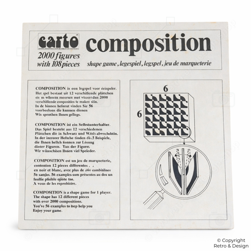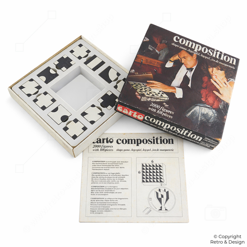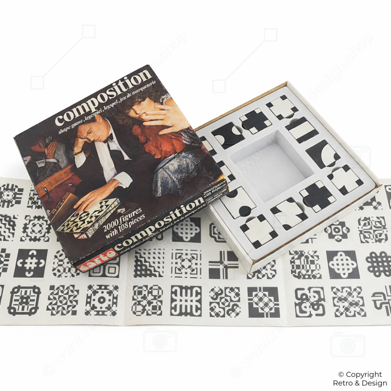 Montitoys was een fabrikant die bekend stond om educatieve en creatieve spellen. In de jaren ’60 groeide de populariteit van abstracte denkspellen, waarbij vorm, structuur en inzicht centraal stonden. Composition sluit perfect aan bij deze trend en is een mooi voorbeeld van tijdloos spelontwerp.