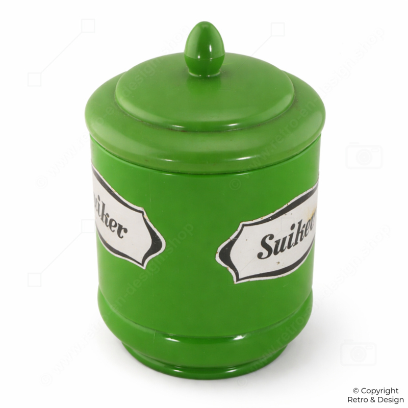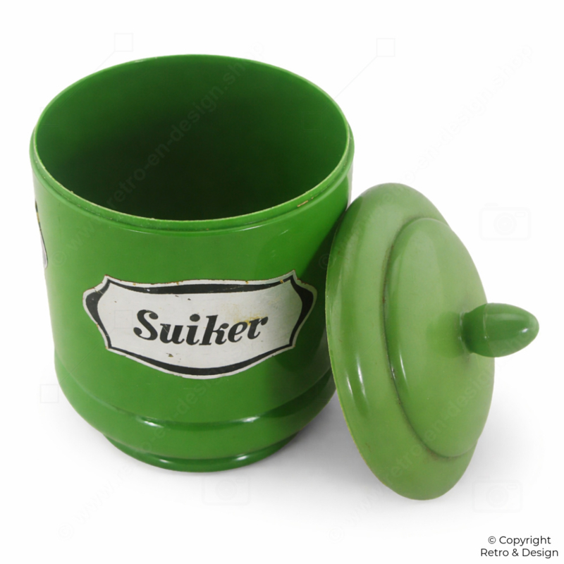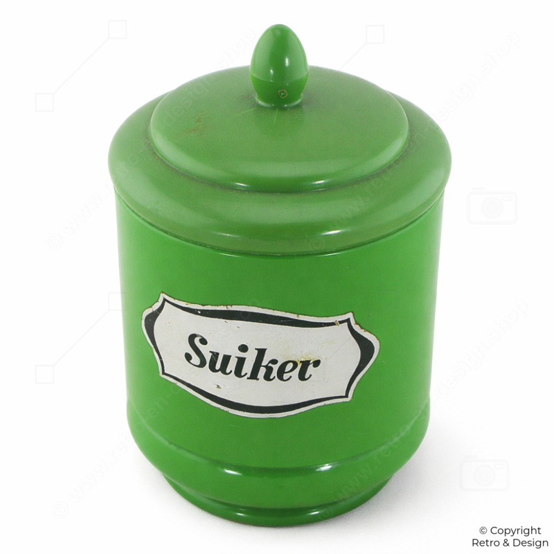 • Frisse retro suikerpot van kunststof in kenmerkend Emsa design uit West-Duitsland.