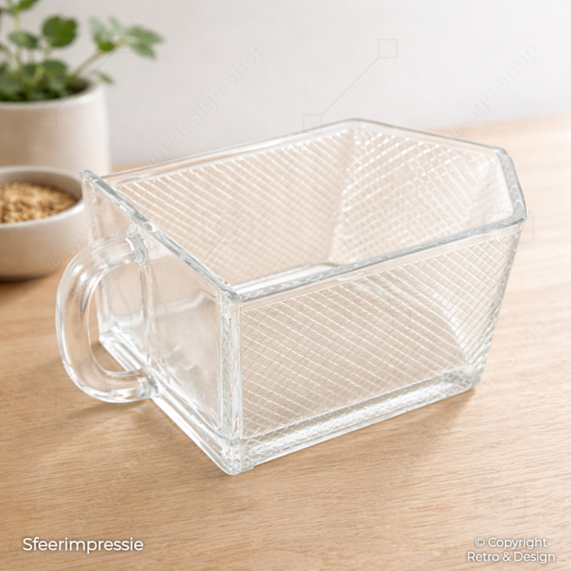 Vintage Glazen Gruttersbak Lade / Schepbak – Persglas met Ruitpatroon (Jaren ’50)