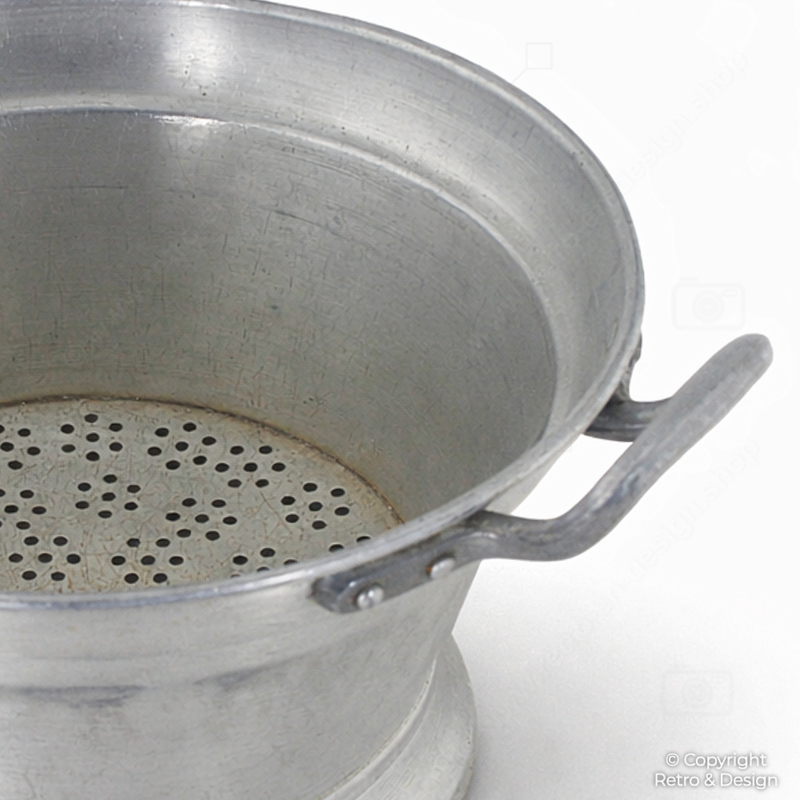 Dit klassieke aluminium vergiet is een functioneel stuk keukengerei met een mooie, doorleefde uitstraling. Ideaal voor het afgieten van groenten, aardappelen of pasta. Dankzij de verhoogde voet kan het water goed weglopen zonder direct contact met het werkblad.