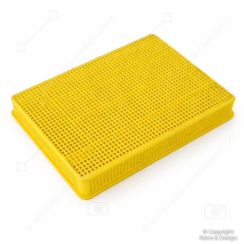 • Praktische vintage bestekbak van kunststof in een frisse gele kleur