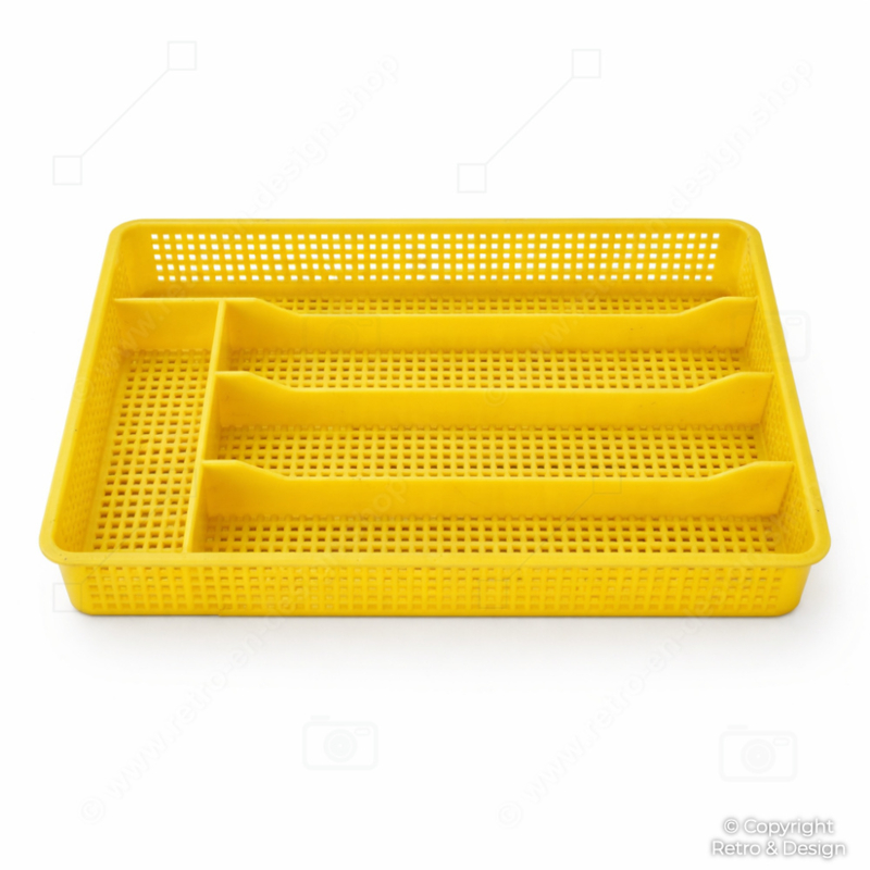Vintage bestekbak / lade organizer – kunststof – jaren 60/70 – geel