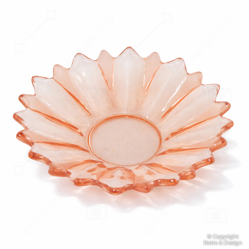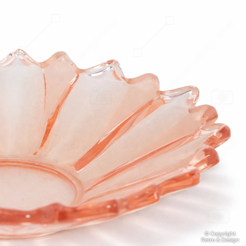 Vintage glazen schaal – peach / roze – bloemvorm – Ø 19,5 cm