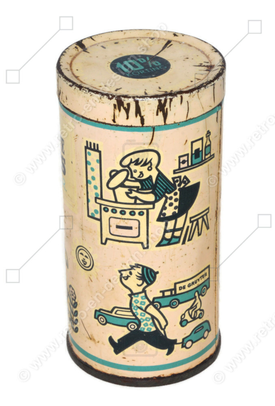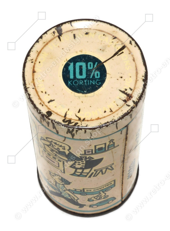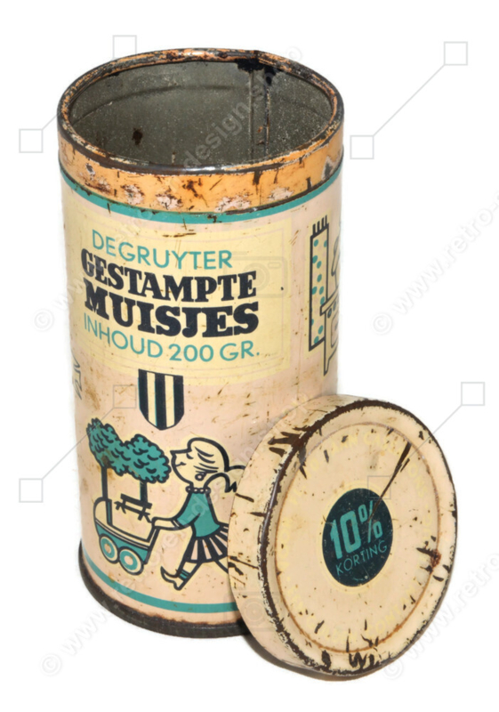 Artikelnummer: BT-3871-22Vintage blikje voor gestampte muisjes van De Gruyter uit de periode 1950 - 1955