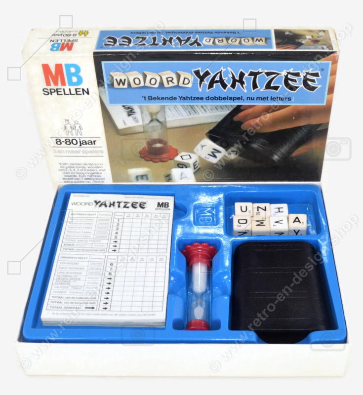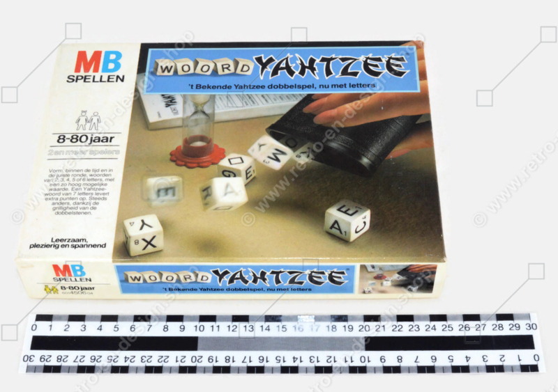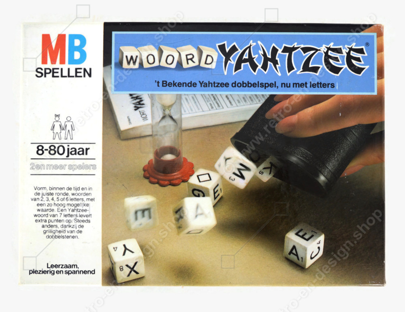 Woord YAHTZEE. 't Bekende dobbelspel nu met letters, uit 1979