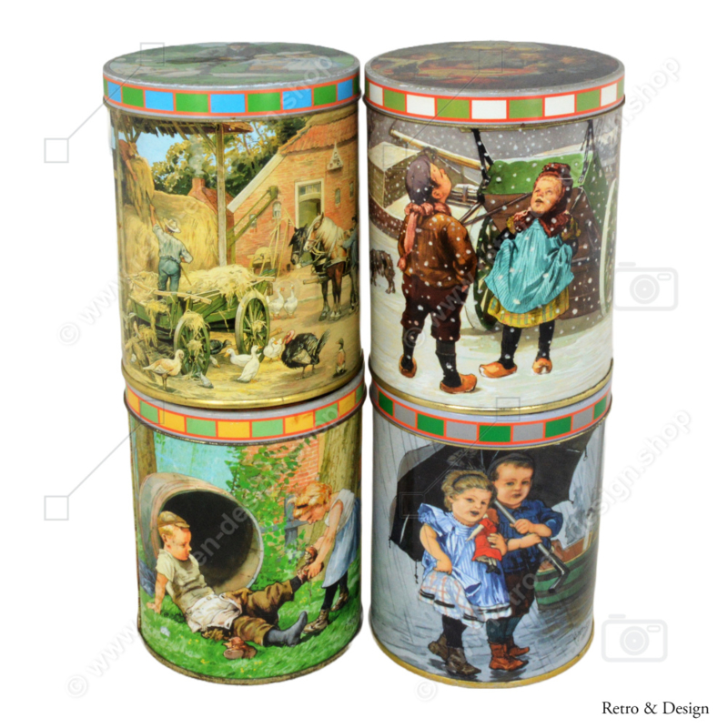 De hier aangeboden blikken betreft de complete serie van de vier blikken uit de serie met afbeeldingen van Ot en Sien in vier jaargetijden. Een hele mooie serie!